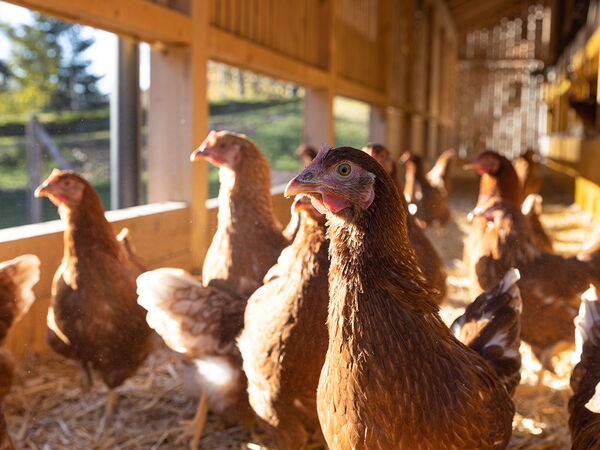 BIO-Legehennen haben den tiergerechtesten Standard überhaupt. Der Zugang zur Weide sollte täglich gewährt werden. Ausnahmetage sind etwa Sturm, starker Regen oder extremer Schneefall. Jedoch gibt es eine vorgeschriebene maximale Tagesanzahl, wie lange die Hühner im Stall bleiben dürfen. Das Einstreulege-Nest besteht aus Dinkelschalen. Hier kann sich jede Henne ihr Nest so formen, wie sie es möchte. Das Futter ist ausschließlich BIO-Getreide aus Österreich. Spritzmittel, Gentechnik, Glyphosat oder Kunstdüngereinsatz sind absolut tabu.